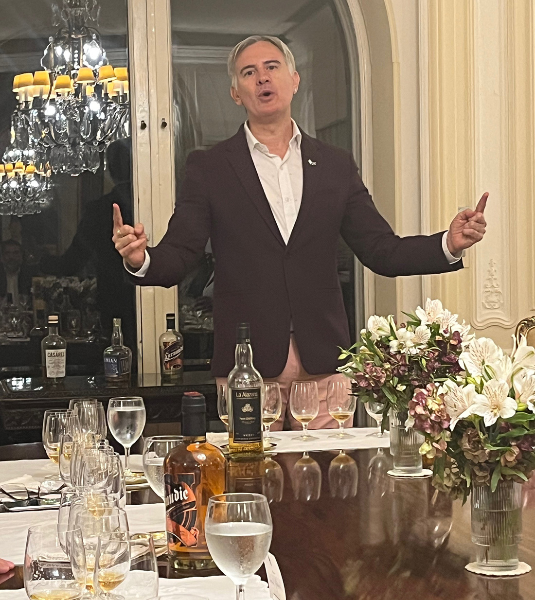 Las palabras de Don Eduardo Bustamante, cónsul general adjunto del país hermano, dio inició a la degustación. Bustamante, diplomático de carrera y apasionado del whisky, pidió a los presentes “abran las mentes, estamos ante productos diferentes a los ya conocidos por todos. Intentar comparar estos Single Malts con sus pares escoceses no sería justo y tampoco necesario. En cada una de estas copas, hay trabajo y pasión rioplatense. Hay compromiso, amistad, saberes compartidos, y esa es la razón de este encuentro” concluyó el diplomático, cediendo la palabra a Juan Carlos Baucher quien ofició de maestro de ceremonias.